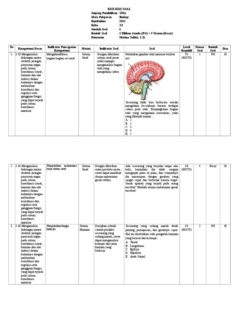 Soal Essay Cc Indah from imgv2-2-f.scribdassets.com Sistem yang mengatur kerjasama antara saraf dan hormone terdapat pada daerah… a. Menerima dan meneruskan suatu rangsang. Contoh soal essay biologi dan jawabannya bab metabolisme sel biologi kelas 12 smama program ipapembaca sekolahmuonline berikut ini kami sajikan untuk anda contoh soal mata pelajaran biologi dan jawaban atau pembahasannya untuk. Responnya langsung terhadap rangsang luar. Berikut, contoh soal essay kelas 10 semester genap dan kunci jawabannya kurikulum 2013, untuk siswa sma/smk/ma/mak/sederajat, dimulai dari soal nomor 61. Soal jawaban sistem saraf manusia banksoal soal essay beserta jawaban tentang sistem saraf, soal jawaban sistem saraf manusia posted on 26 06 2019 28 01 2019 by admin soal jawab materi system saraf manusia 1 jelaskan perbedaan neuron sensorik neuron motorik dan neuron asosiasi. Analisislah kedudukan legislatif, eksekutif, dan yudikatif sesuai dengan prinsip checks and balances! Soal dan jawaban fisika soal dan jawaban termodinamika kelas xi.